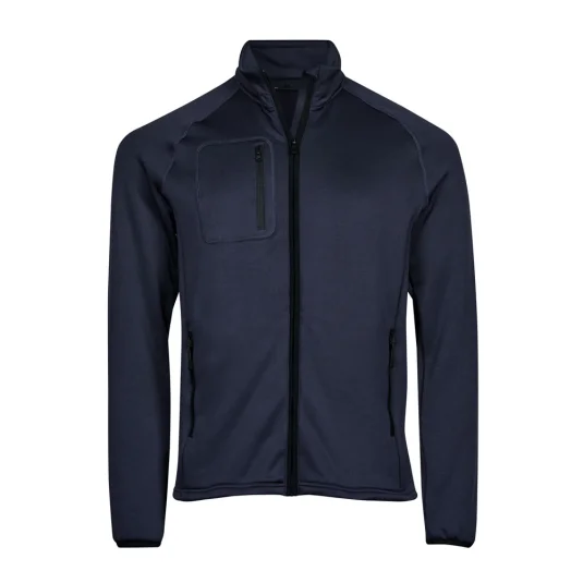 Veste polaire élastique avec manches raglan et intérieur gratté.Col montant avec protection du menton, 2 poches latérales et poche de poitrine avec fermeture éclair.Certifiée selon OEKO Tex Standard 100
