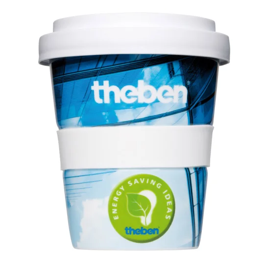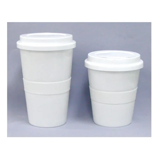 Tasse à café élégante avec couvercle plastique de qualité et bague silicone à nervures (protection thermique), contenance 3 dl