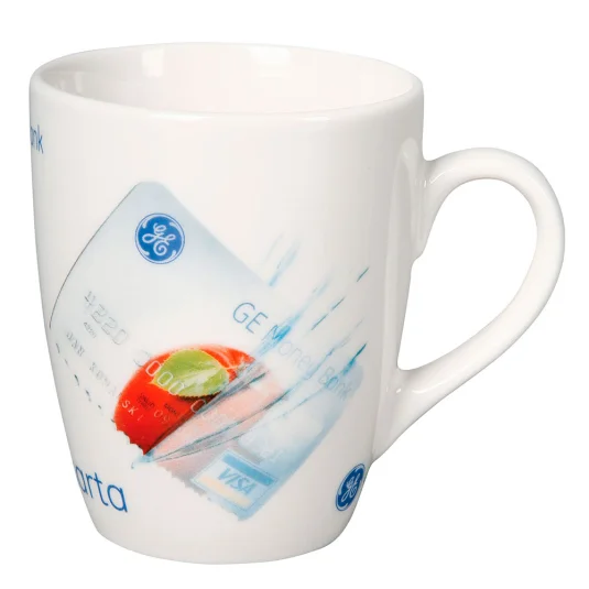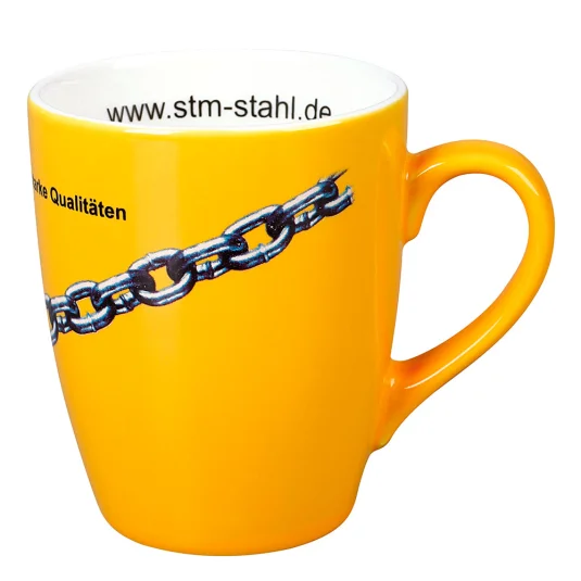 Tasse bicolore en céramique de forme sympa, contenance 3 dl, commande min 108 pièces