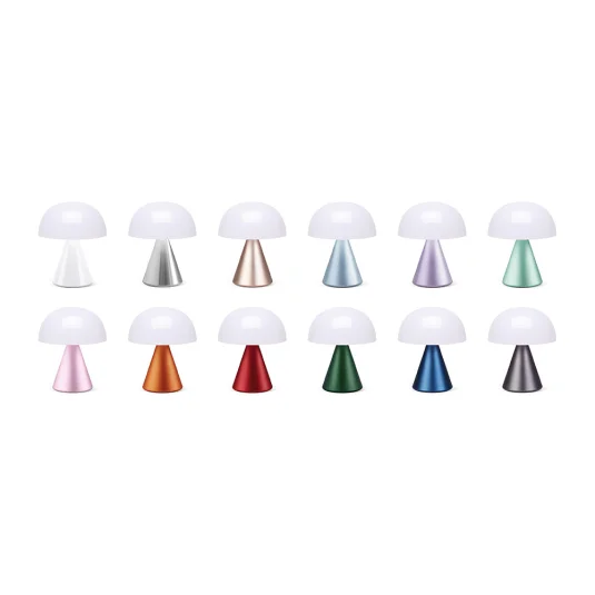 Lampe LED inductive stylée en aluminium, avec 9 réglages de couleur de LED variables, une autonomie de 24 heures ainsi qu'un temps de charge de 2 heures, résistante aux éclaboussures (IPX4), est livrée avec un câble USB-C.