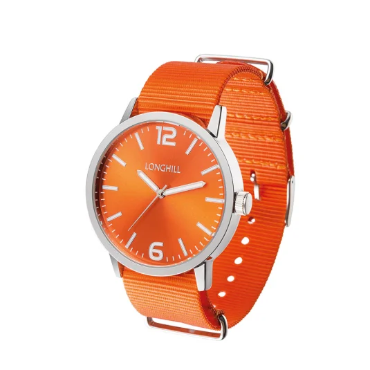 Montre tendance élégante avec grand cadran, bracelet stylé en tissu et grand cadran, livré dans un étui vitré