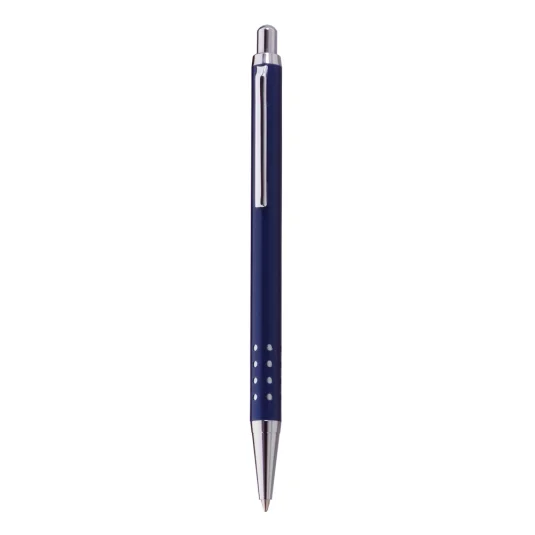 Stylo fin et élégant avec jolie finition à poinçons, corps en métal anodisé brillant et parties métalliques chromées, avec cartouche métallique de grand format (bleu).