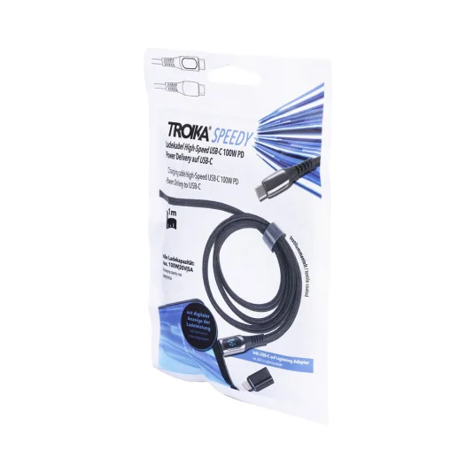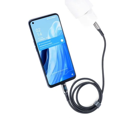 Câble de charge USB-C haute vitesse, gainé de textile avec une capacité de charge jusqu'à 100W, affichage numérique de la puissance de charge et adaptateur USB-C vers Lightning