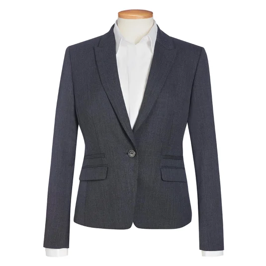 Blazer court à coupe étroite avec 1 bouton centré à l’avant, deux poches passepoilées, deux poches, une poche intérieure, dos avec coutures à la mode, lavable en machine et infroissable.