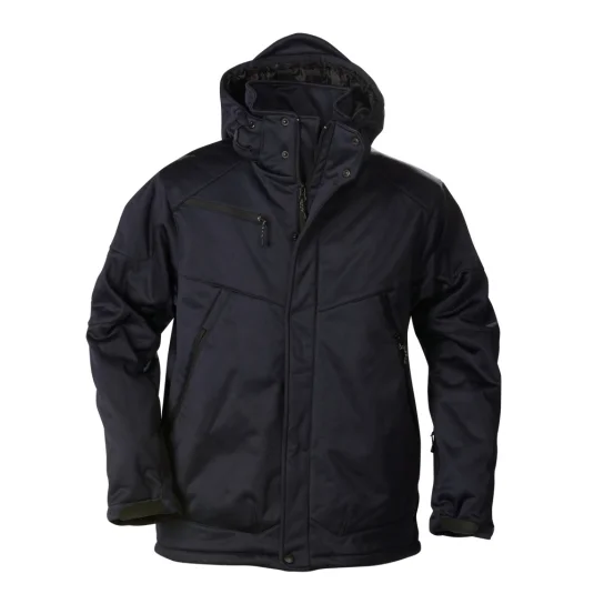 Veste softshell rembourrée, capuche amovible, manches ergonomiques, cordon dans l'ourlet, fermetures Velcro aux manchettes, poche frontale et sur la poitrine avec fermeture éclair, 2 poches intérieures avec fermeture éclair et 1 poche filet