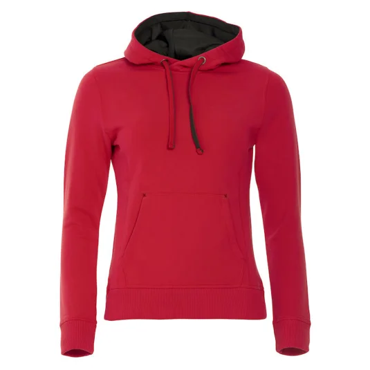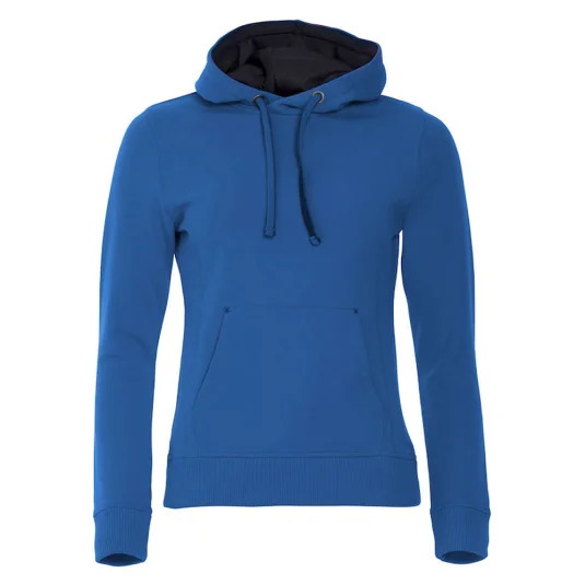 Sweat à capuche à poche kangourou adaptée aux smartphones / écouteurs, capuche avec doublure contrastée et cordon élastique, bordure côtelée aux manches et au bas, coutures flatlock ton-sur-ton.