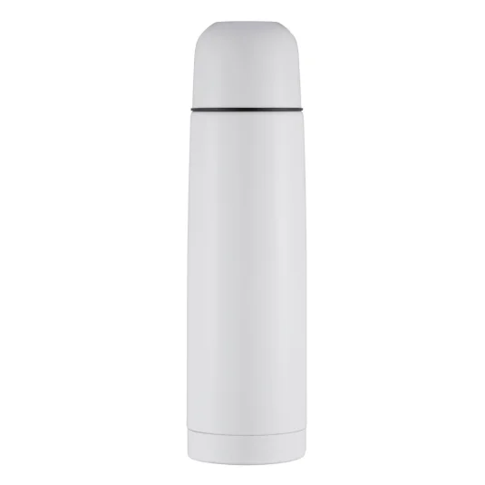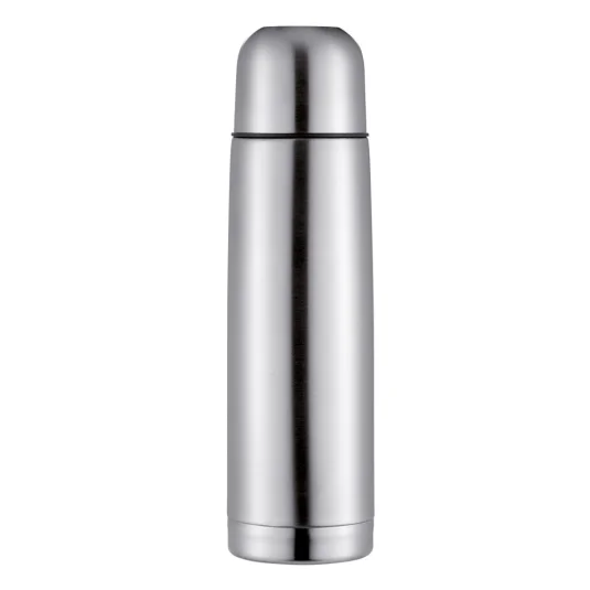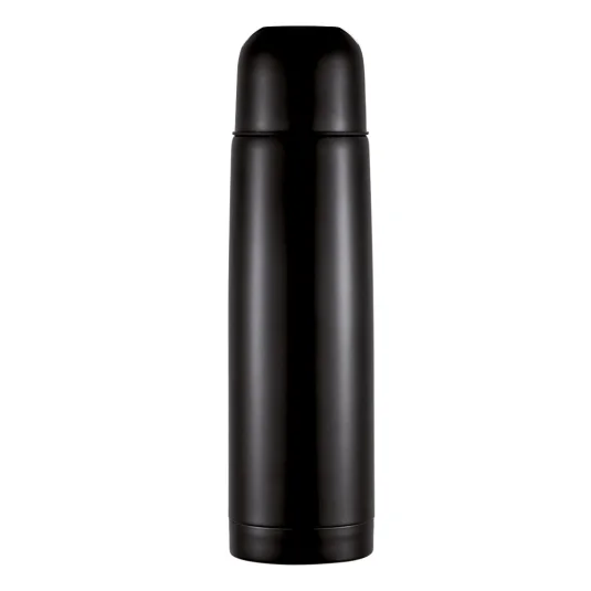 Bouteille isotherme sous vide en inox, avec mécanisme d’ouverture à bouton poussoir