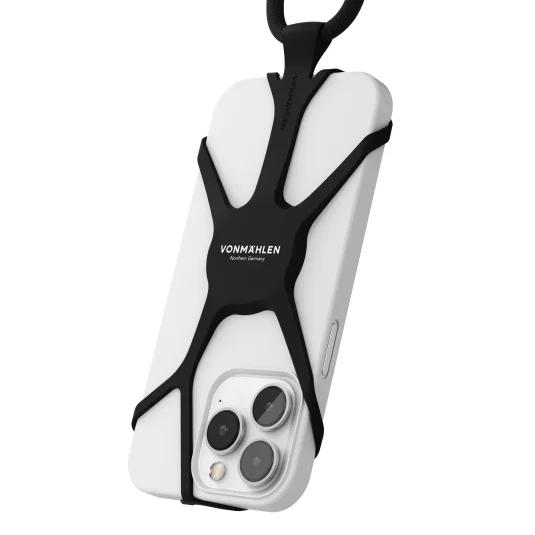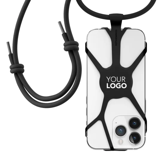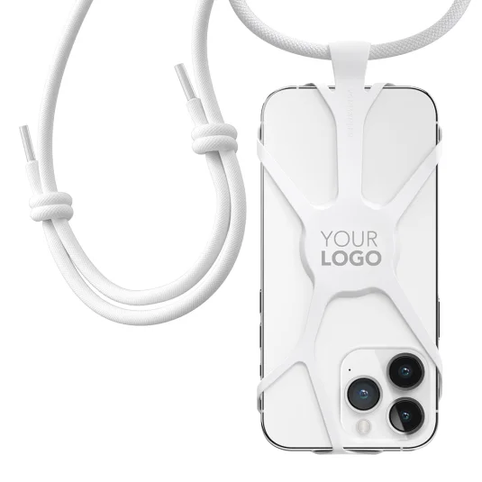 Collier pour smartphone tendance et universel en silicone résistant et cordon en nylon (55% de matériaux recyclés) réglable en longueur (jusqu'à 150 cm) avec design de nœuds, compatible avec tous les appareils mobiles courants.