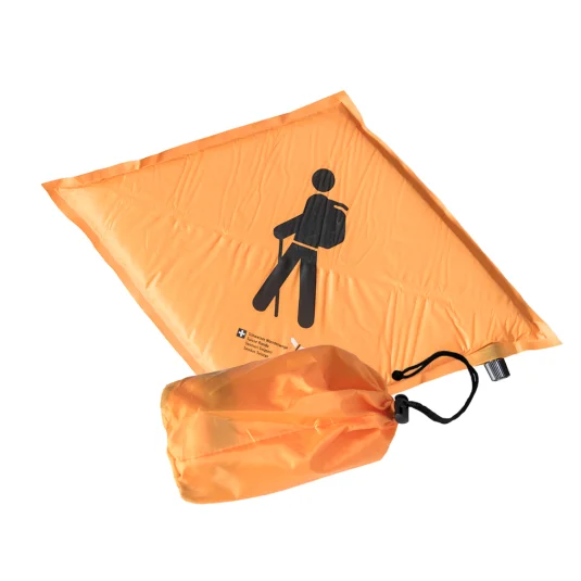 Coussin très pratique à emporter à des événements ou en randonnée, fourni avec un petit sac, se gonfle de lui-même et se remballe facilement, taille standard rectangulaire, commande min 500 pièces (formes spéciales possibles dès 1000 pièces)