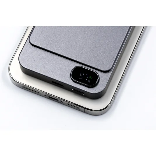 Élégant, magnétique, sans fil ! Banque d'énergie élégante en aluminium, se fixe au Magsafe et prend en charge les appareils compatibles Qi1 et Qi2 sans fil, jusqu'à 15 W pour une charge ultra rapide, avec un port USB-C supplémentaire de 20 W (PD 3.0) pour ordinateur portable ou autres appareils, un écran LCD élégant avec affichage de l'état de la batterie et de l'état de charge ainsi qu'une puce intelligente qui protège les appareils contre les surintensités, les décharges profondes, les surcharges, les surchauffes et les courts-circuits
