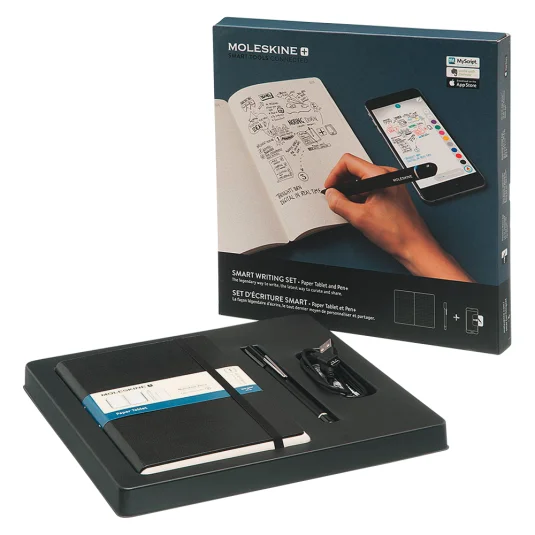 Le Moleskine Pen+ reconnaît ce qu’il écrit, et à quel endroit, sur le carnet de notes Paper Tablet. L’app gratuite Moleskine Notes transmet ensuite à distance vos notes manuscrites en temps réel et vous donne la possibilité de numériser des textes, de les modifier et de les organiser et même de les transmettre directement. 176 pages avec pointillés, fourni avec câble USB pour le Pen+